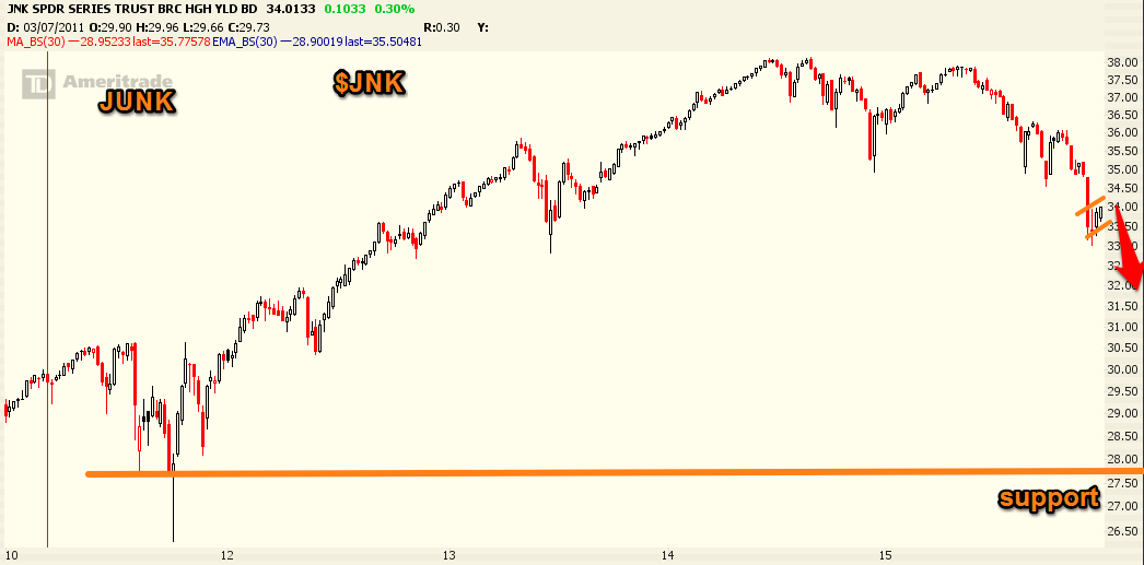 Junk bonds will resume their decline in earnest in 2016 and will likely come down to support early in the year.