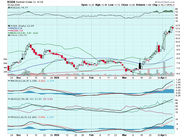 KODK closed down 1.5% on Friday but was up over 7% in the week and then was one of the top headlines on CNBC all weekend with this