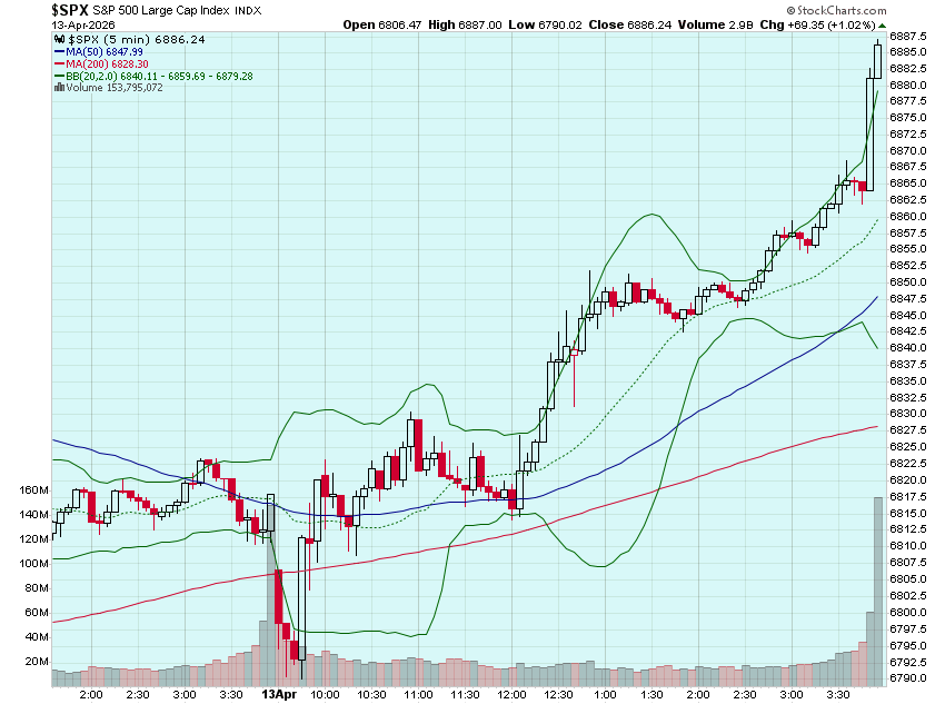 Markets opened in the red yesterday, after US/Iran peace talks failed and after Trump announced a blockade on Iranian ports. Stocks melted higher after the open and never looked back, rallying into the green and continuing to pad gains with the S&P ending the day up 1%. Who had that on their Bingo card from Sunday? Take a look at this move: