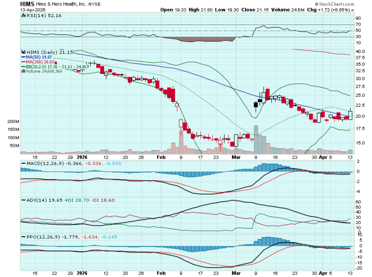 I finally added HIMS calls, with the stock showing life off the bottom and poised to breakout over its 50dma. The stock seemed to stall after I added the calls and then found sellers. I didn't want to lose much on the trade so closed the calls out. Sure enough HIMS went on a rally shortly thereafter and the calls were up over 200%. Frustrating but can't fault sticking to the plan. Still have my eyes on HIMS and may look for further out strikes today: