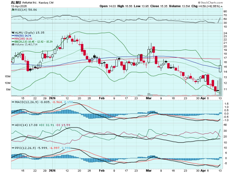 I was watching ALMU after the open yesterday for a possible entry but it is tough to find decent risk/reward strikes when it only has $2.5 increments. Will be watching again today. May look at $17.50s and/or some May calls if it shows signs of getting FOMO like AAOI: