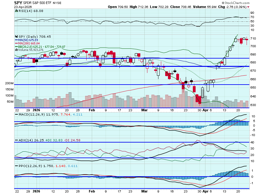 Markets went back into profit taking mode on Thursday. Not much was different between Wednesday and Thursday outside of earnings from $NOW putting pressure on software names. It was just more headlines from the Middle East. Between 1pm and 1:45pm yesterday the SPY fell from $711 to $702 with no headline or catalyst to speak of. Then bounced back to $709 by 2:30. Normal price discovery... sense my sarcasm. Just exhausting knowing that one headline can change your positions in a big way. This morning there are reports people from Iran are headed to Pakistan for talks tonight and futures rallied on the news. Hopefully this weekend can be it... some agreement can be made, and we can go back to trading fundamentals and not headlines. Still think $720 is coming on the SPY with $708 or so being resistance: