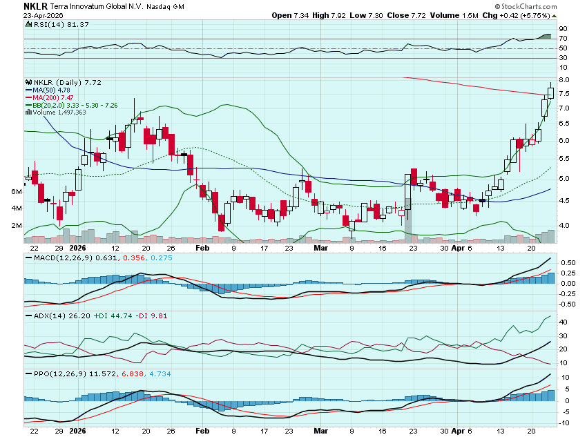 NKLR rallied again yesterday, closing up nearly 6%. I used the move to close some of my calls out for nearly 100% to cover costs. It is gapping higher again this morning. Have to think FOMO comes in here at some point. I may look to close more of my $10 calls out and look for some further out strikes to play for the FOMO: