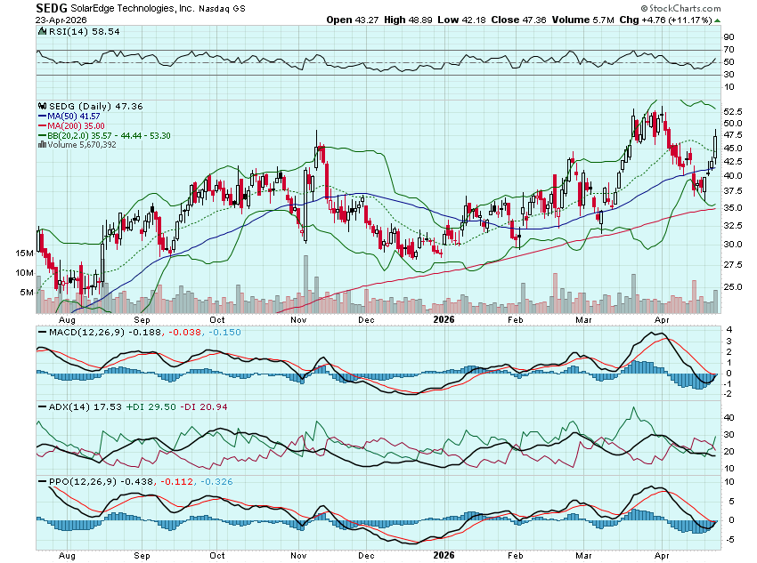 Energy, energy, energy. That story is not going away anytime soon and still boggles my mind that names like SEDG, ENPH and even FSLR are acting like their sector is in decline. At some point that changes. I added some SEDG calls into next week and like magic the stock rocketed higher. By the afternoon I was able to lock some of the calls in for 100% and 300% and held the rest. If it breaks and holds $50 today I may look for more strikes: