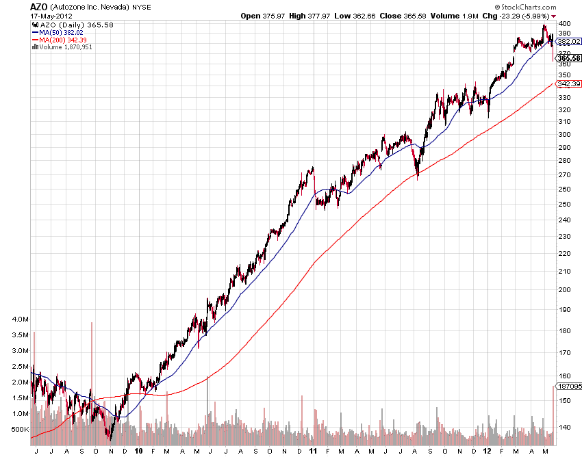 Just an amazing run-up the last few years for AZO. It has been impervious to downside, until now.