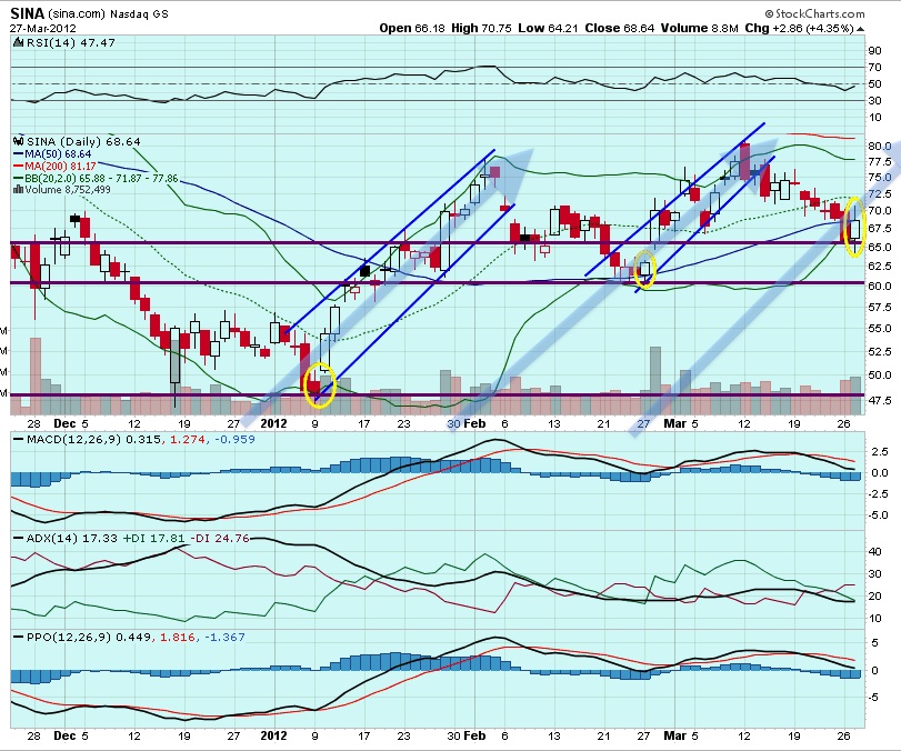 We have brought up SINA(SINA.COM) on many occasions. We actually brought it up on our watchlist yesterday and today, knowing the bottom is close, and the move up from this next bottom will be violent.