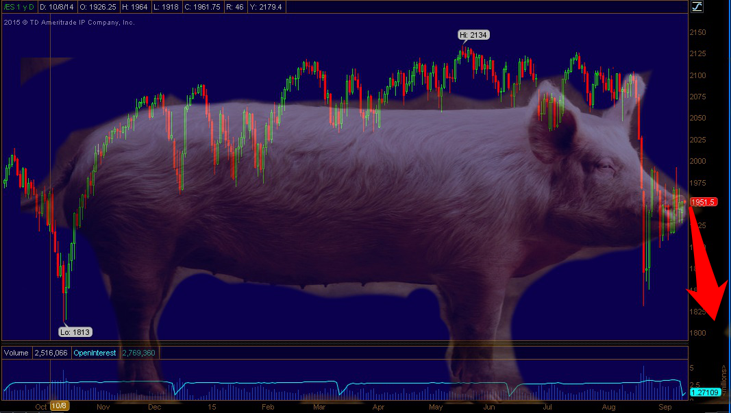 and you know, after the massive, historic stock market rally from the lows in 2009, stock market participants were getting quite portly. The old saying 'pigs get slaughtered' could not be any more apparent than the recent 1 year pattern for the S&P500.