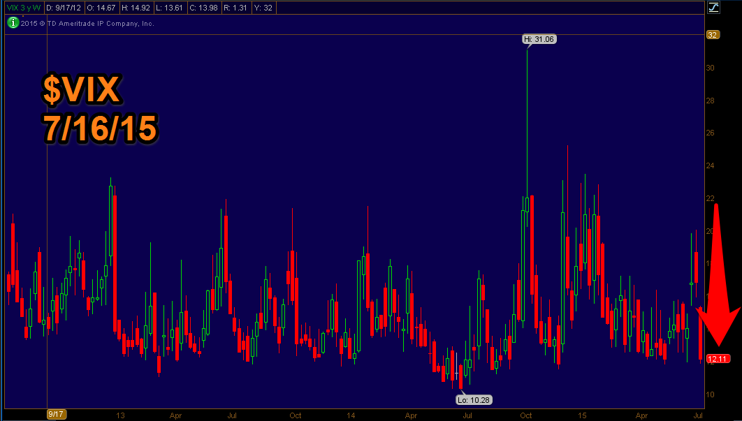 The VIX remains in beat down mode. The 20 level of last week looks to get cut in half. It's been dumped quicker than a cup of moldy Greek Yogurt.