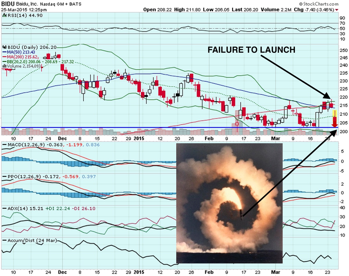 I currently hold puts on Baidu ($BIDU) and may add or sell them as I see fit over the next few days. Below is the failed breakout chart I see on the stock. Happy Trading!