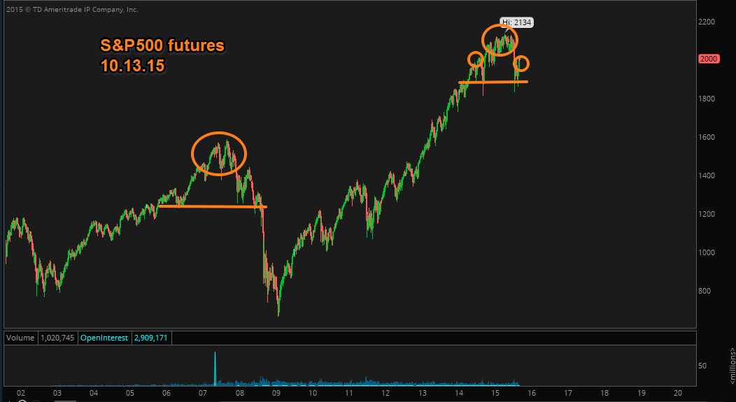 We are nearing key support levels, the first being the 2,000 S&P500 futures figure that held on Friday.  Next up is the resistance that was capping the recovery from the August crash.