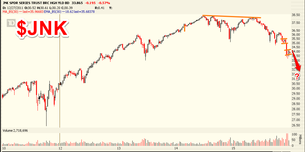Junk bonds still look terribly vulnerable to downside. The search for yield amid record central bank accommodation blew a massive bubble in Junk bonds.