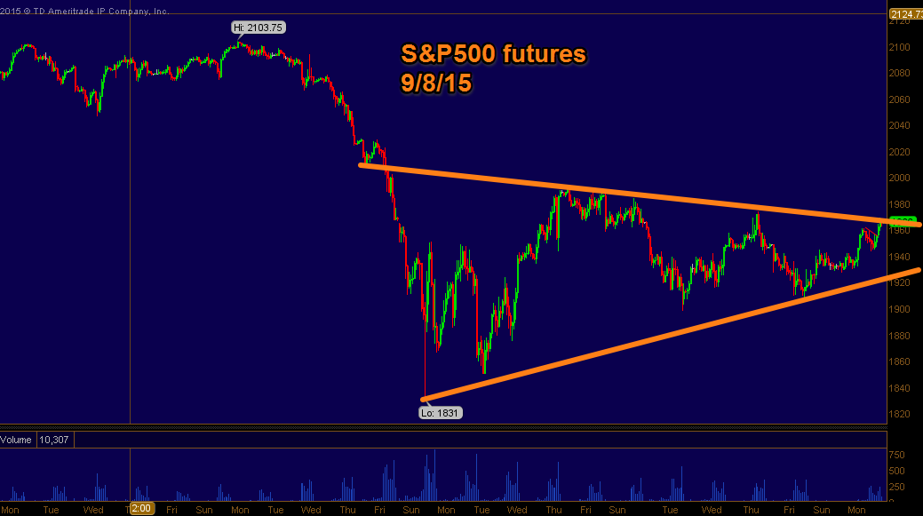 After the long labor day weekend a lot of money was being put to work.  Let's face it, we've seen some incredibly wild price action as of late.  The massive move higher today could very easily turn into a massive move lower tomorrow.  The only thing certain is that prices will move and judging from  the compression of the current wedge I think the move is going to be something as big, if not bigger than today's move.