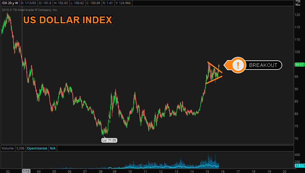 The US Dollar recently broke out of a consolidation phase which could send it levels it hasn't seen in over 13 years.